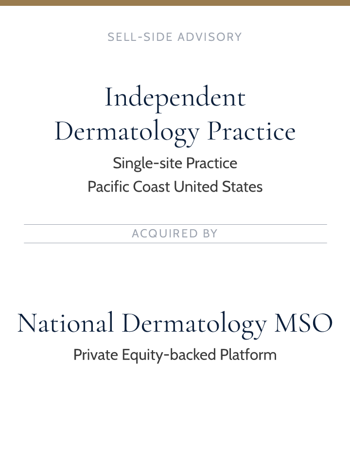 Dermatology was among the first physician specialties to experience large-scale private equity consolidation, and the market has matured into one of the most competitive and well-capitalized in healthcare M&A. Practices that combine medical, surgical, and cosmetic service lines — particularly those with Mohs surgery capacity — tend to command premium valuations. Pure cosmetic platforms attract a distinct acquirer set with different return expectations and deal structures than those focused on medical dermatology. Provider tenure, real estate arrangements, the ratio of employed to independent physicians, and the presence of advanced practice providers are among the structural variables that most meaningfully affect both valuation and deal terms. Because the market has matured, physician owners benefit significantly from advisors who understand current platform strategies and can identify which acquirers are most likely to compete aggressively for a specific practice’s profile.